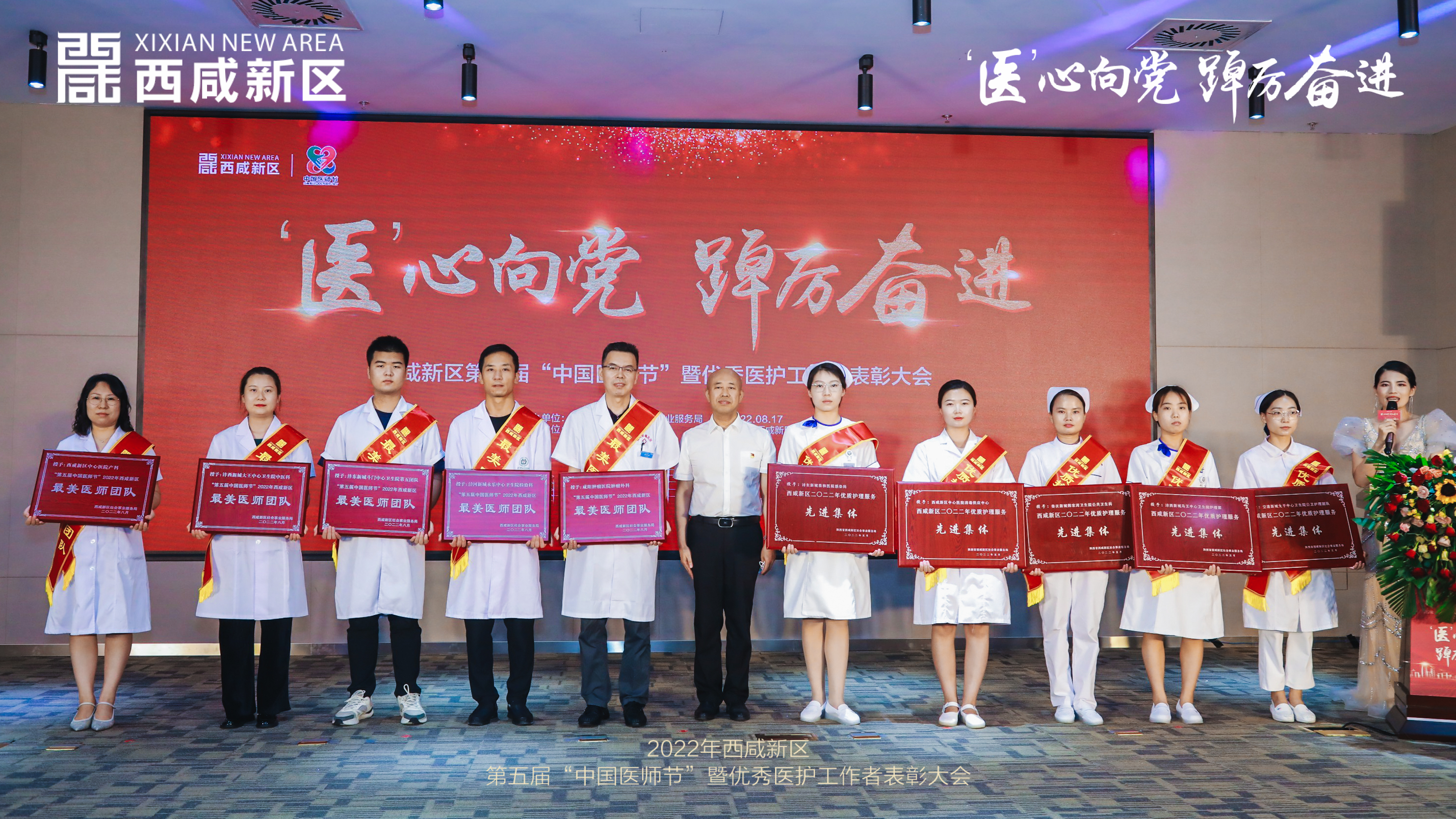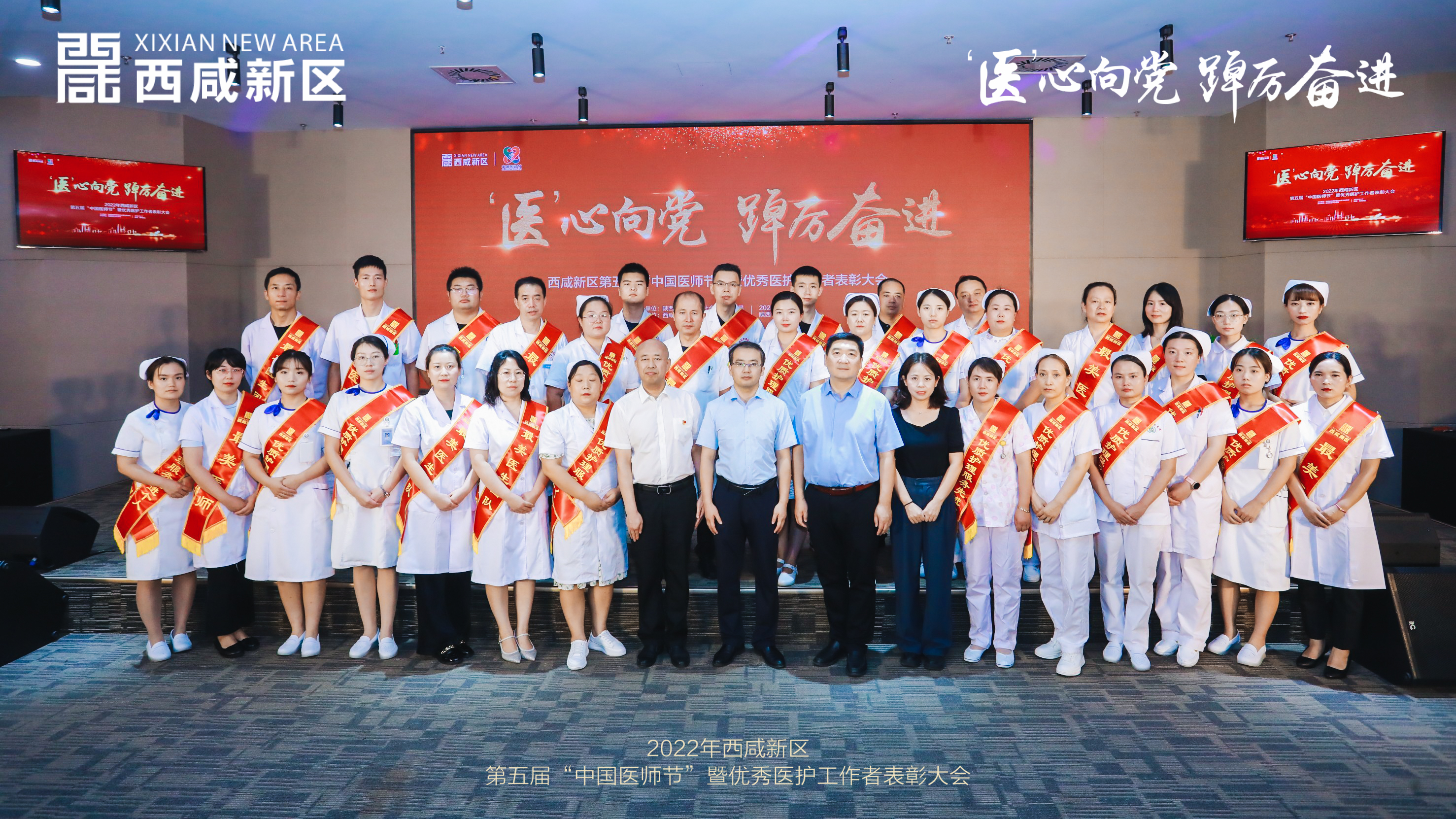 2022年8月17日,在中國(guó)醫(yī)師節(jié)即將到來(lái)之際,由陜西省西咸新區(qū)社會(huì)事業(yè)服務(wù)局主辦、西咸新區(qū)中心醫(yī)院承辦的“西咸新區(qū)第五屆‘中國(guó)醫(yī)師節(jié)’暨優(yōu)秀醫(yī)護(hù)工作者表彰大會(huì)”順利召開(kāi),本屆醫(yī)師節(jié)以“‘醫(yī)’心向黨 踔厲奮進(jìn)”為主題,彰顯新區(qū)醫(yī)者與黨同心、不忘初心、牢記使命的責(zé)任擔(dān)當(dāng),活動(dòng)現(xiàn)場(chǎng)氛圍濃厚,各環(huán)節(jié)精彩紛呈。