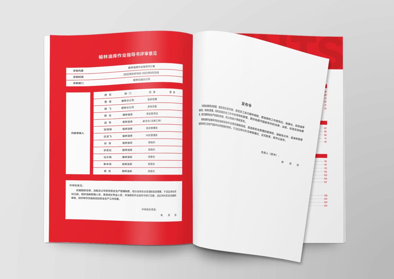 做好油庫的安全生產(chǎn)管理,并非是一句空頭口號,而是有著實質(zhì)的規(guī)范制度,中國石化《油庫作業(yè)指導書匯編》,即旨在將管理制度更加清晰、系統(tǒng)的呈現(xiàn)出來。從設計師所考慮的視覺角度出發(fā),為將指導書內(nèi)容清晰明確的呈現(xiàn)出來,整體版面選擇“簡而不凡”的設計手法,避免繁瑣的裝飾素材堆積,并在色彩組合上,大面積用色只選用中國石化的標準色“紅色”及“白色”,以極簡的視覺效果,進一步明確油庫安全管理規(guī)章制度內(nèi)容,由此發(fā)揮指導書的真正作用。