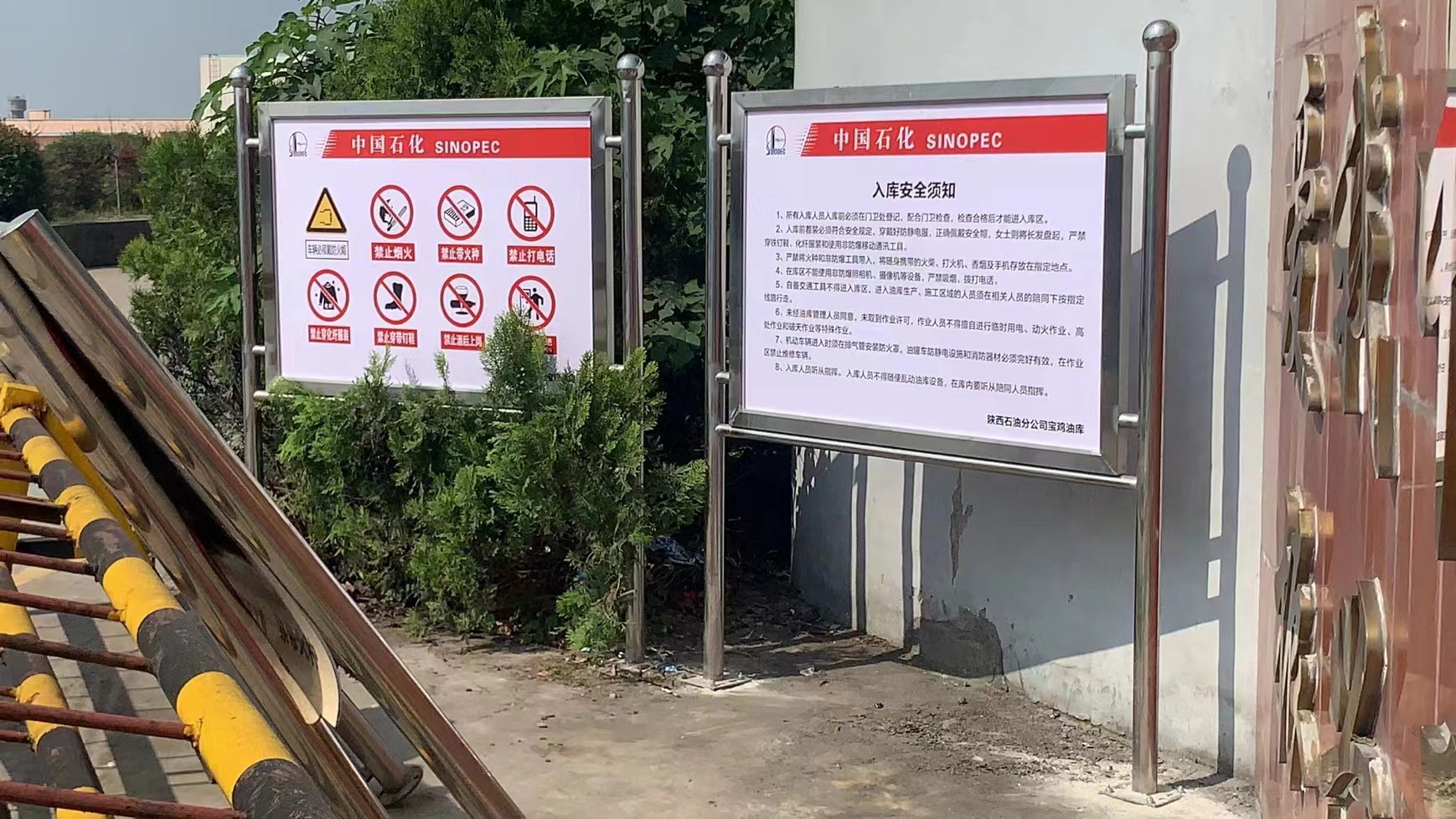 油庫,必然需要清晰易見的安全生產(chǎn)“可視化管理”。中國石化陜西區(qū)域油庫,為充分做好庫區(qū)安全生產(chǎn)的“可視化管理”,全面展開了油庫安全生產(chǎn)標準化標識體系建設。金蘋果廣告在保證中國石化基礎設計標準的前提下,針對三大不同油庫的庫區(qū)環(huán)境和條件,按照不同尺寸及視覺瀏覽效果進行了針對性設計,由此確保了安全管理規(guī)范信息清晰、準確的輸出。