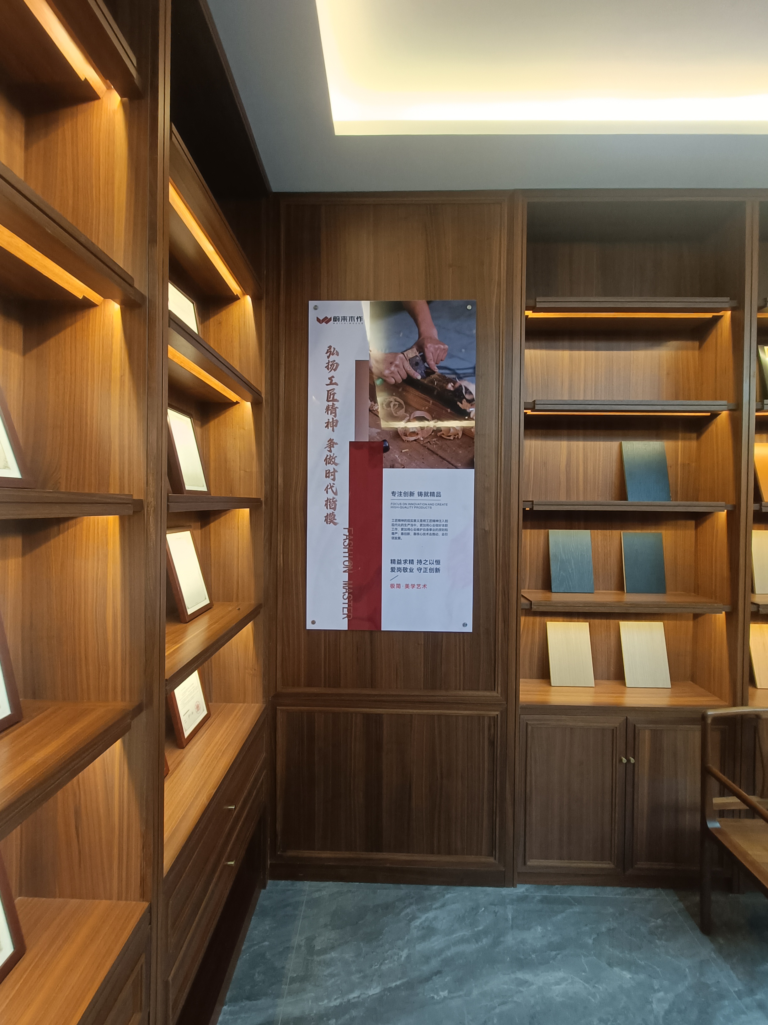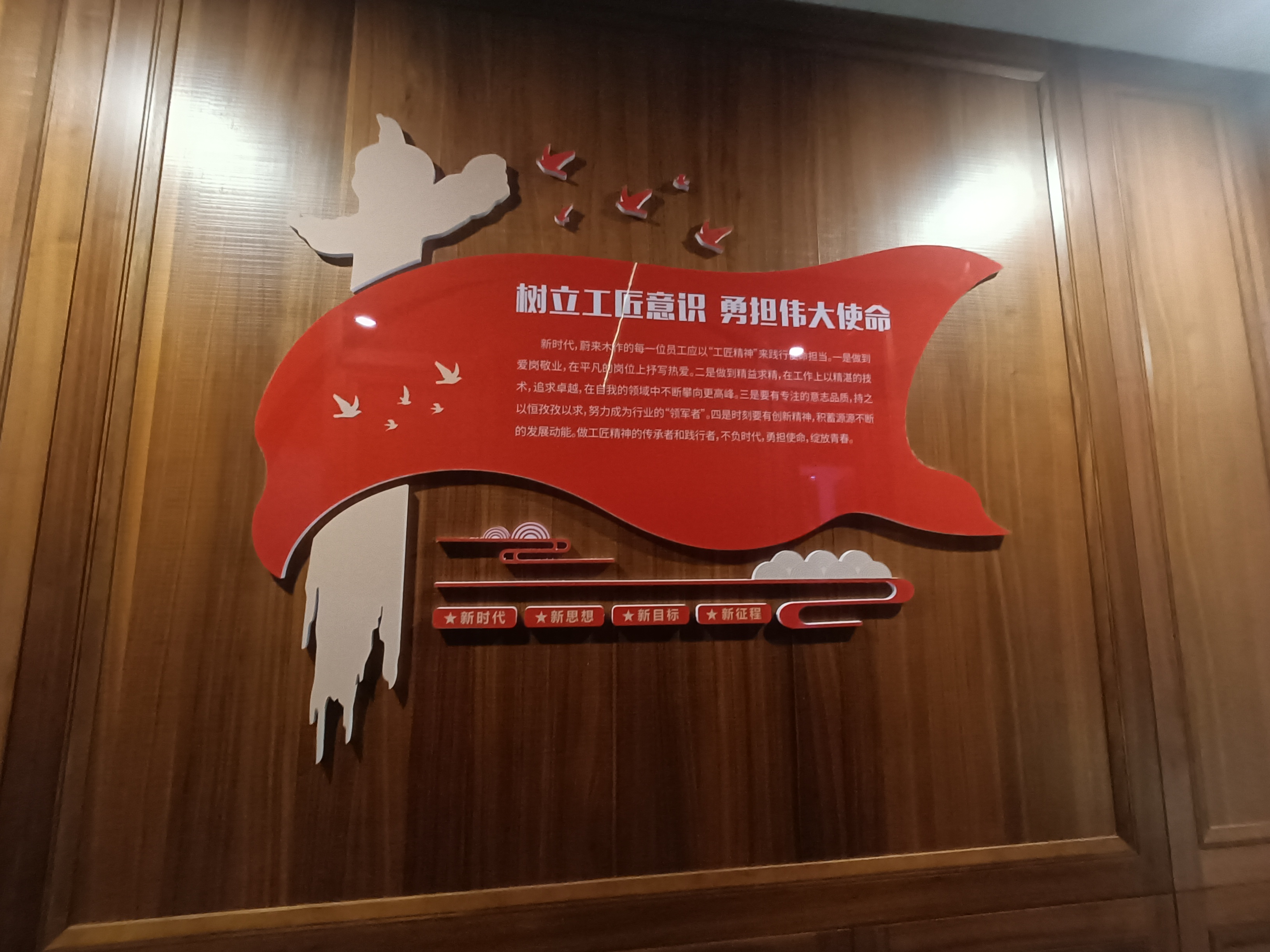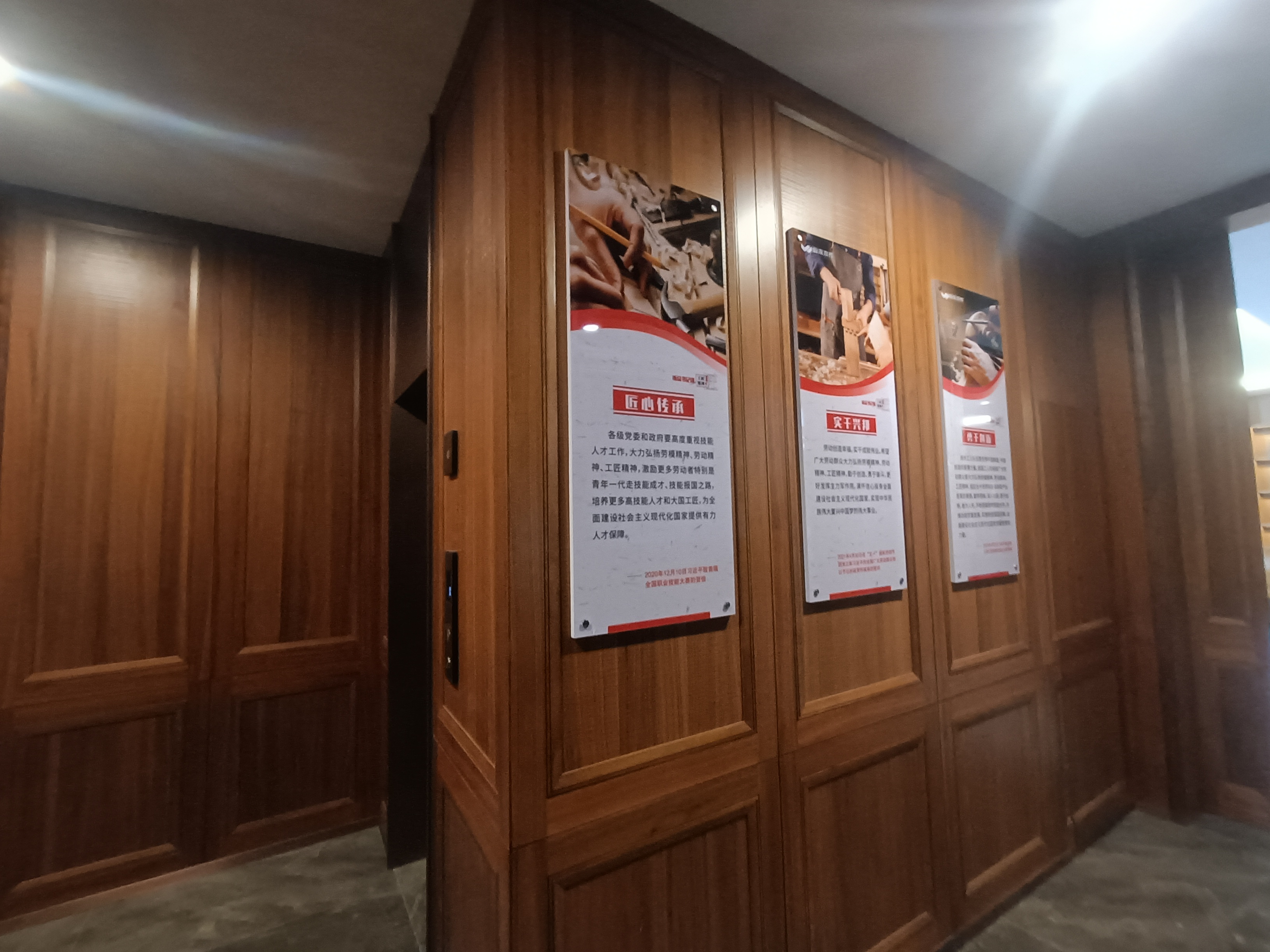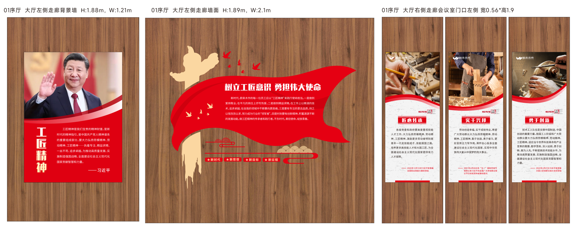 而經(jīng)前期溝通與企業(yè)文化解讀發(fā)現(xiàn),「蔚來木作」企業(yè)所想傳達的核心,即是“工匠精神”,因此在整體的內(nèi)容規(guī)劃上,金蘋果適當(dāng)融入黨的文化內(nèi)涵中,體現(xiàn)大國工匠及工匠精神的成果及內(nèi)容,并結(jié)合「蔚來木作」“黨建大廳”“黨建活動室”、“黨員學(xué)習(xí)室”及“黨建會議室”四大空間的位置及面積,進行內(nèi)容邏輯的合理布局,使得展廳“別出心裁”。