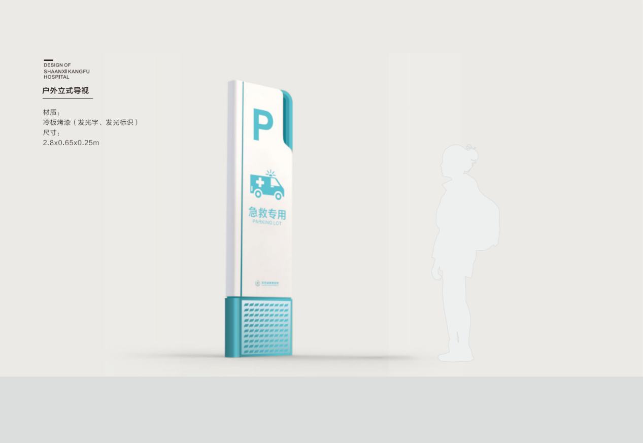 標(biāo)識(shí)導(dǎo)視系統(tǒng)設(shè)計(jì),是傳統(tǒng)建筑與視覺(jué)傳達(dá)設(shè)計(jì)的中間學(xué)科,在功能表現(xiàn)上需有信號(hào)、標(biāo)志、說(shuō)明、指示、預(yù)示等多種含義。為確保最終成品導(dǎo)視功能的合理性,項(xiàng)目組所有設(shè)計(jì)項(xiàng)的開展均嚴(yán)格依據(jù)相關(guān)法律依據(jù)及標(biāo)準(zhǔn)規(guī)范、人體工程學(xué)可視參數(shù)、標(biāo)識(shí)信息識(shí)別參數(shù)、視覺(jué)信息識(shí)別參數(shù)及陜西省康復(fù)醫(yī)院院區(qū)實(shí)際空間數(shù)據(jù)等,進(jìn)行有效規(guī)劃,從而保證最終識(shí)別效果的規(guī)范性。