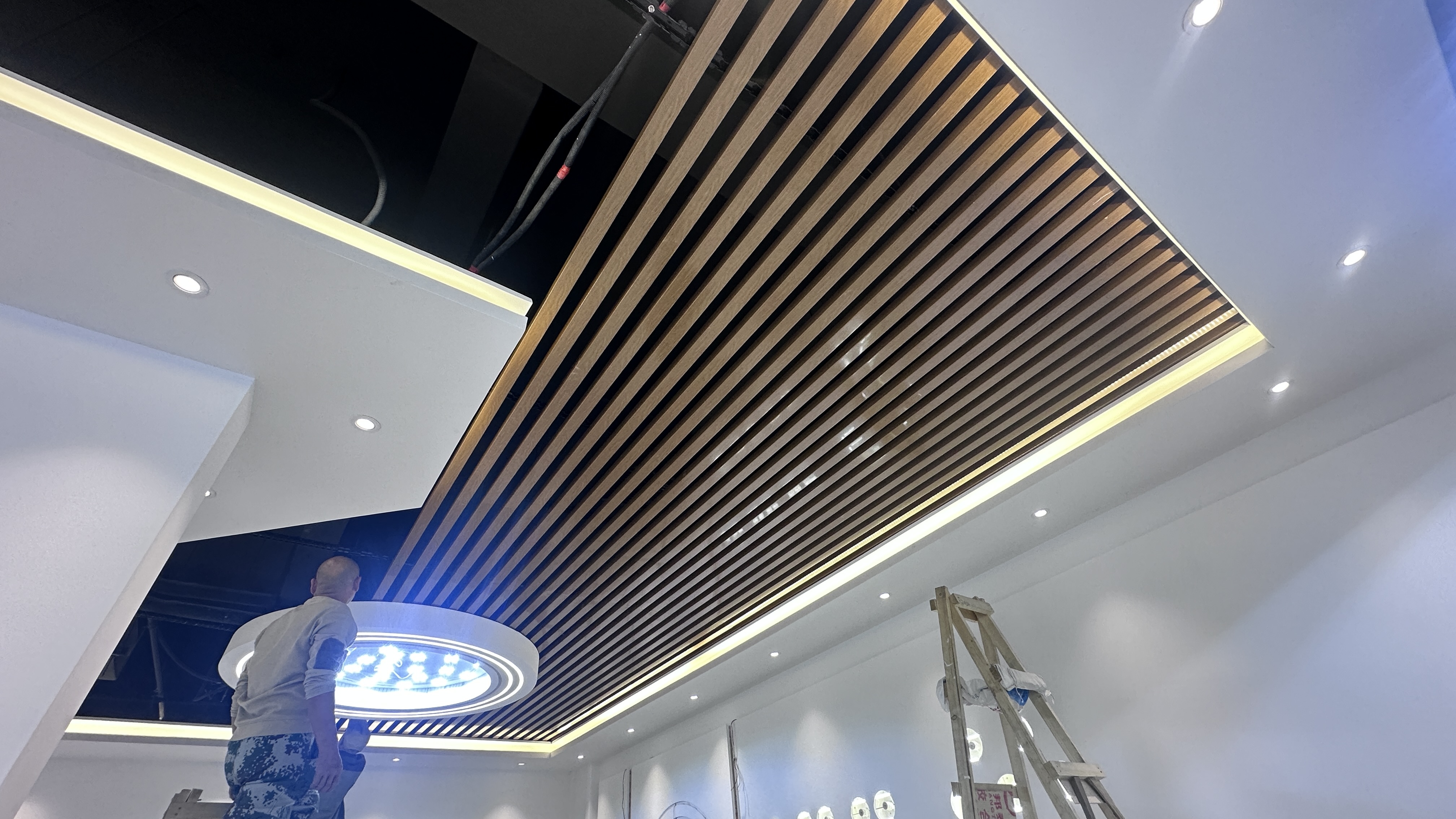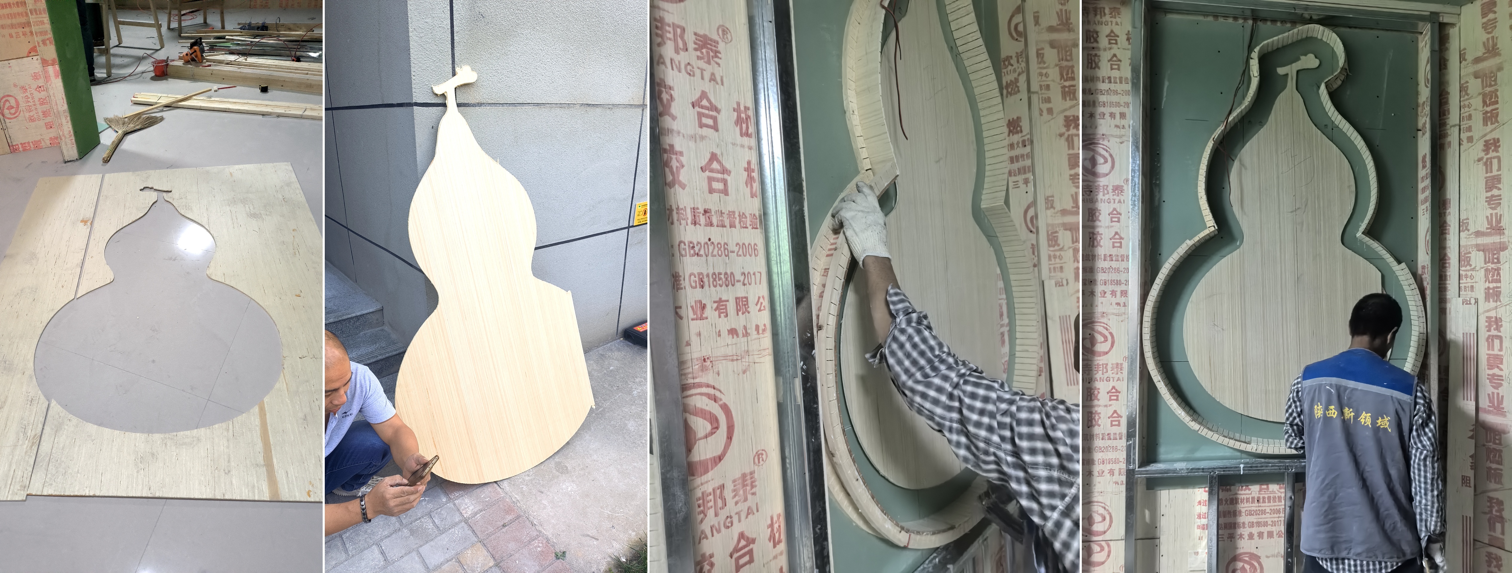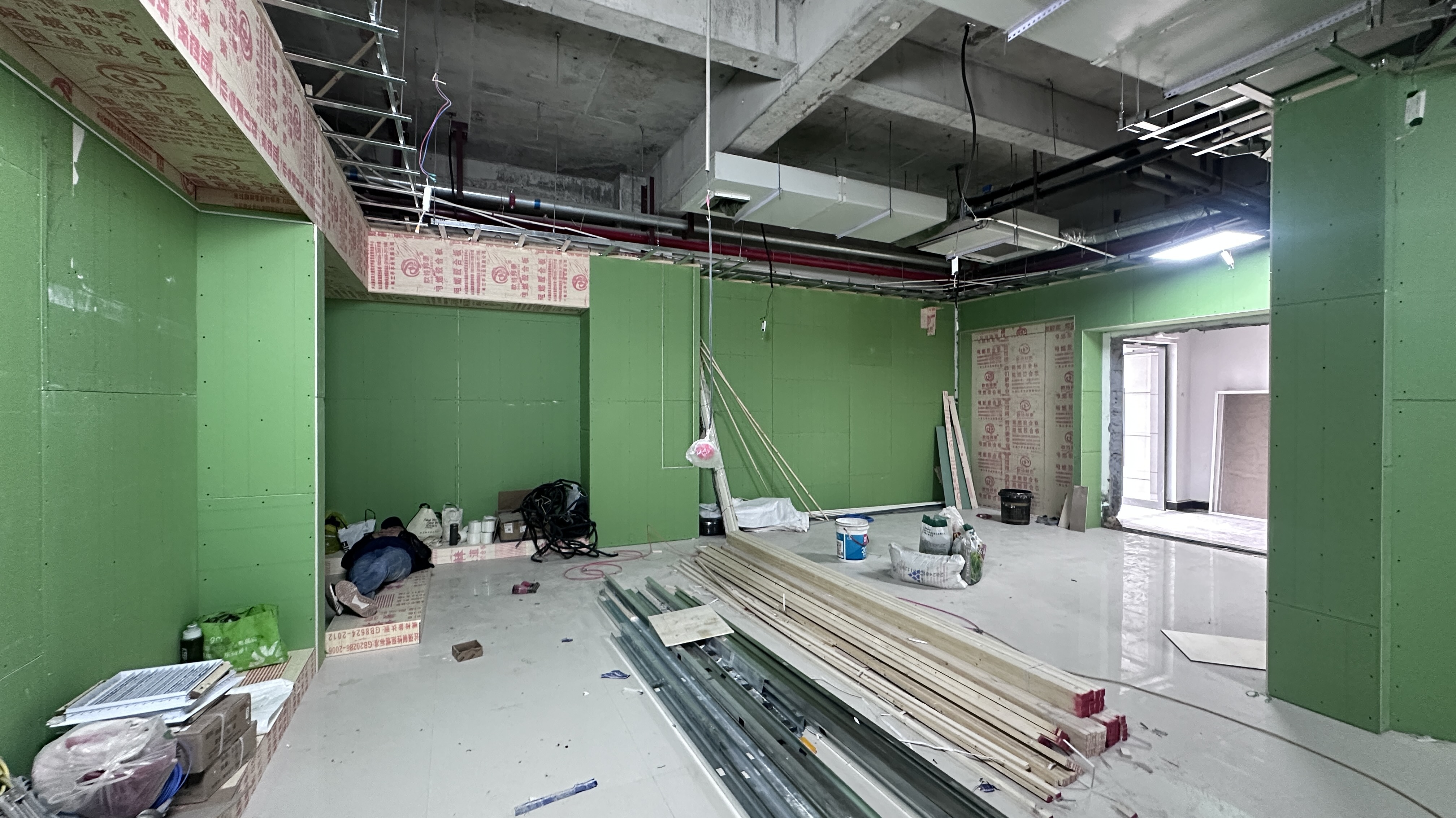 施工作業(yè),是一場“腦”與“力”并肩作戰(zhàn)的過程,它大到一些超重材料的組裝搭建,細到毫厘間的尺寸銜接和角度調(diào)控。在中藥標本館的施工初期,項目團隊依據(jù)施工方案及設(shè)計方案,利用高質(zhì)量輕鋼龍骨做好墻面骨架,用隔音棉填充后再用石膏板封平,并加以鋁塑板、碳晶板、免漆板等板材貼面,后期飾面則采用高光領(lǐng)面烤漆等,由此完成展館的基礎(chǔ)架構(gòu)。后續(xù)依據(jù)展館設(shè)計及展示需求,充分完善電路預埋、設(shè)備安裝、廣告安裝、展柜入場等工序,妥善處理好各步驟施工作業(yè)。