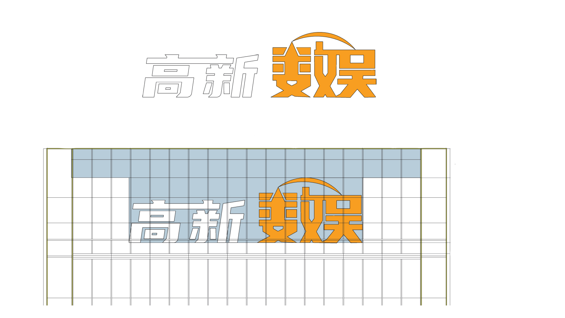 在“高新數(shù)娛”樓體字設(shè)計之初,為實現(xiàn)更好的展示效果,設(shè)計師綜合考慮了字的藝術(shù)性及實用性雙重要素。在藝術(shù)感的設(shè)計上,首先其作為標識字,不能過度的藝術(shù)化表達,因此著重在“數(shù)娛”兩字上做了特殊化設(shè)計,結(jié)合文字偏旁特點,進行組合勾勒,形成藝術(shù)化的設(shè)計表達;