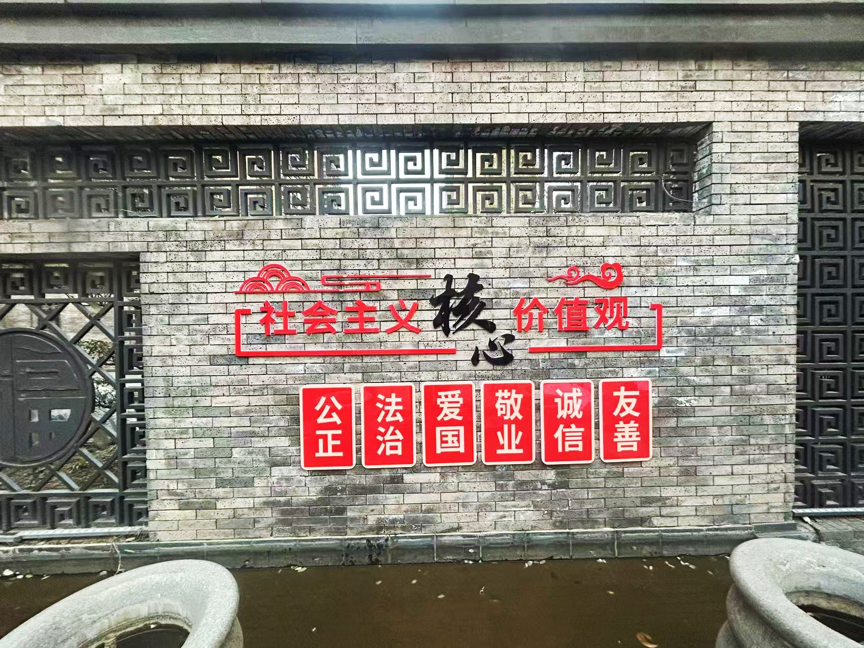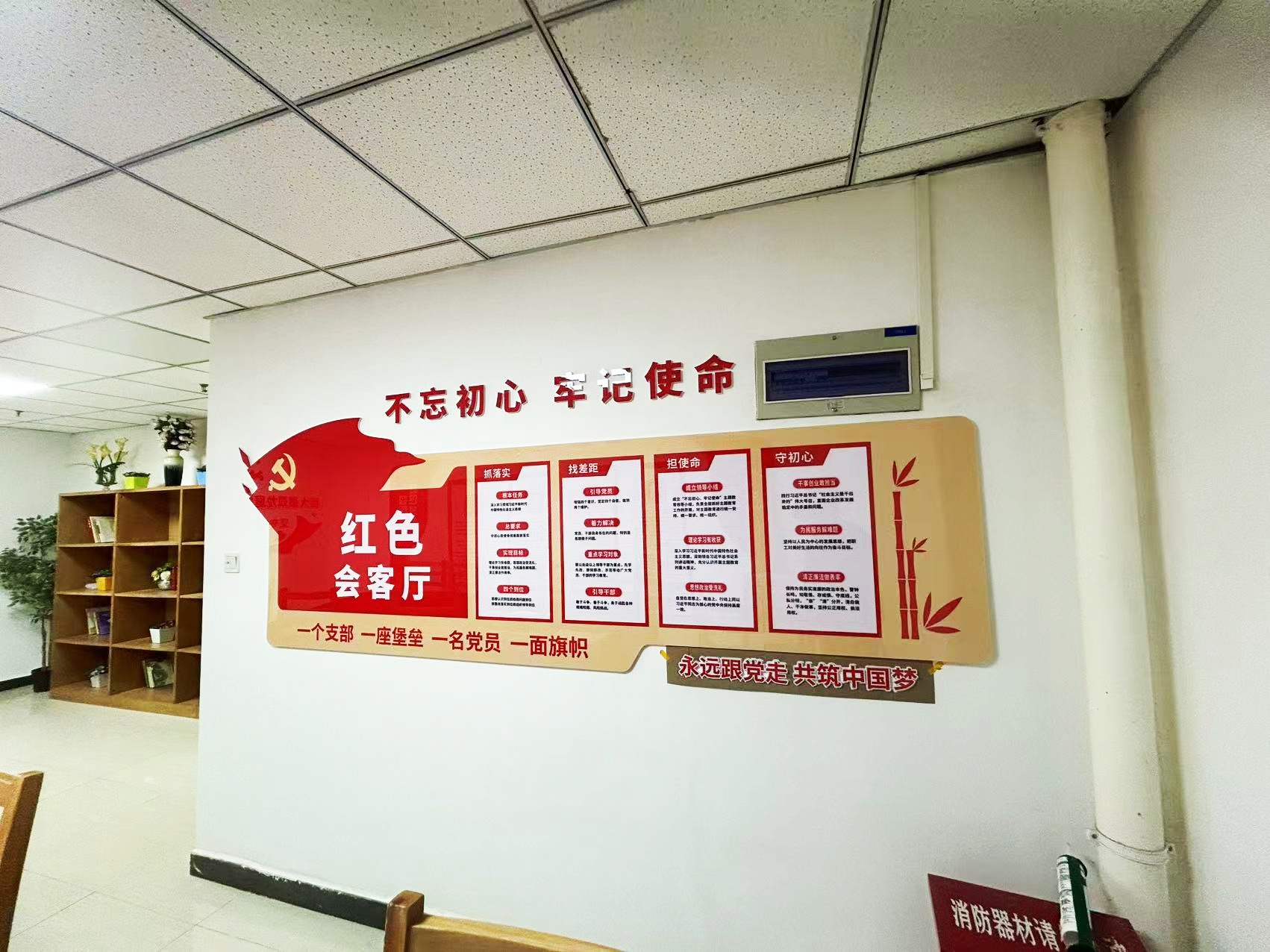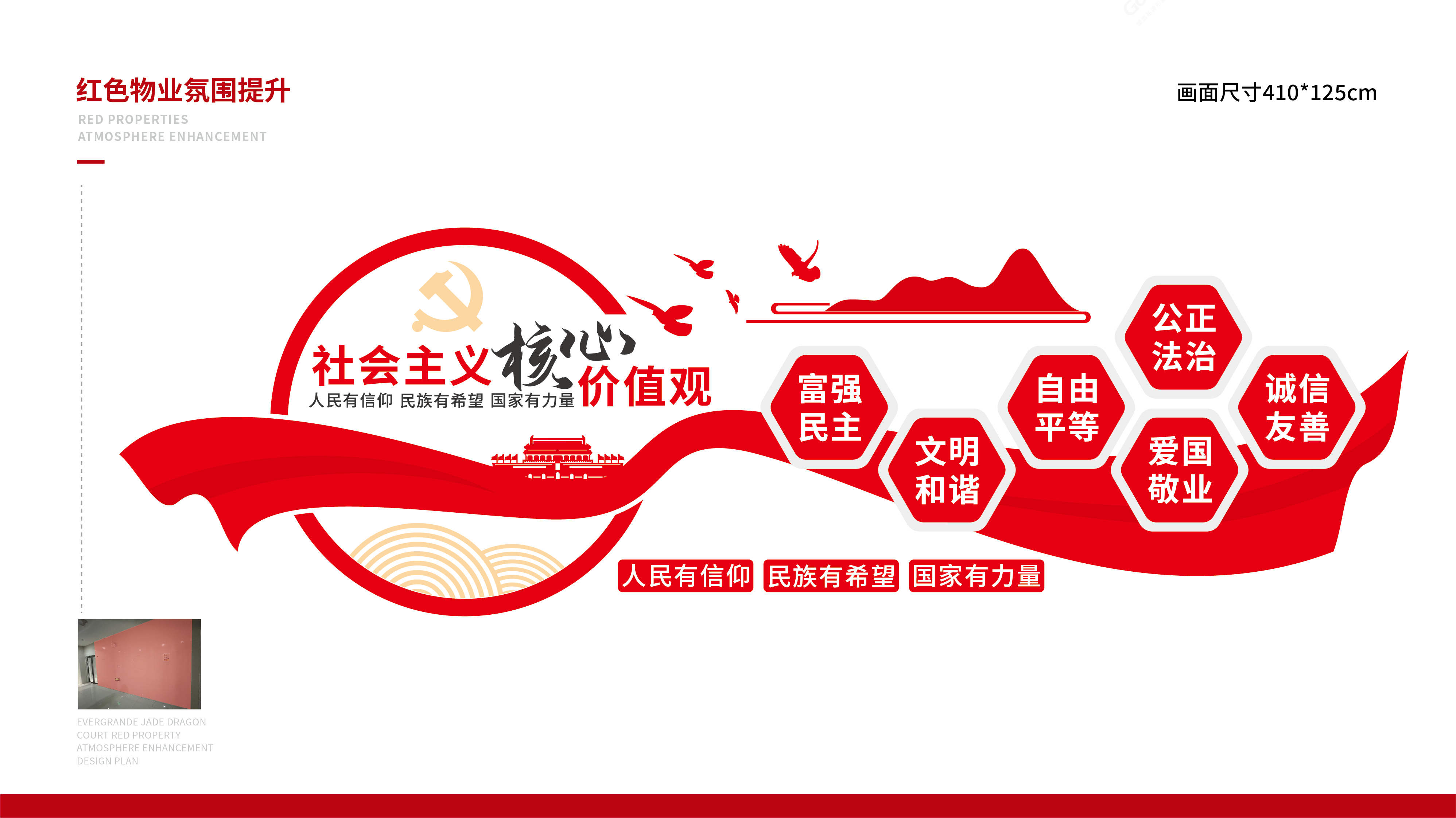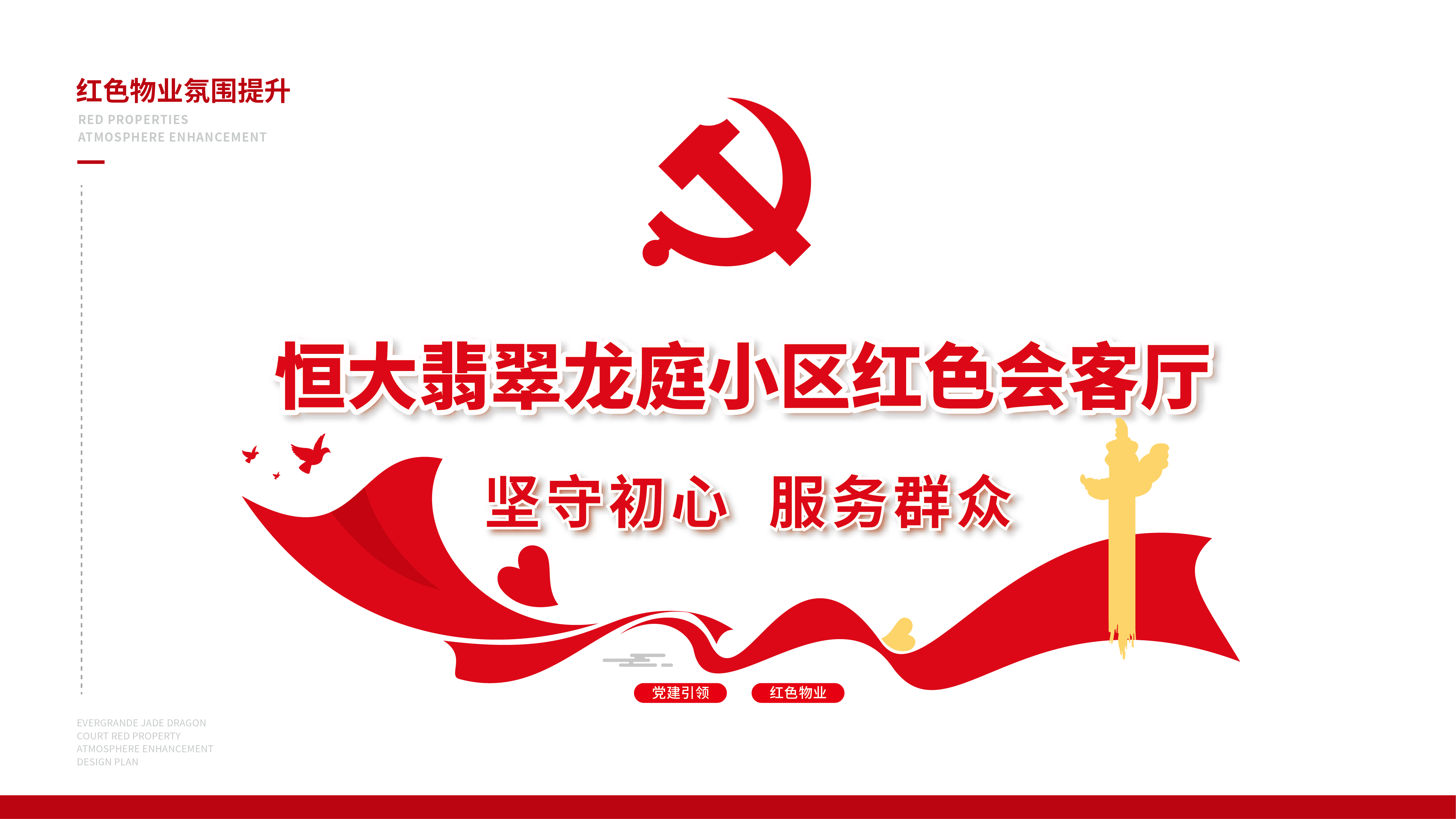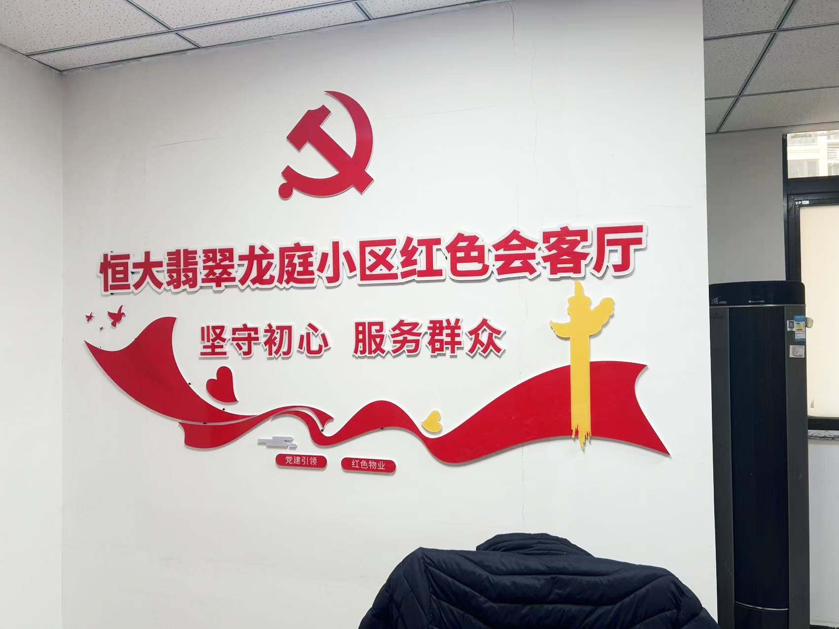 紅色物業(yè)建設(shè),作為黨建文化的重要展示窗口,在社區(qū)工作及群眾精神凝聚上起著重要的作用。項(xiàng)目組因地制宜,實(shí)地走訪社區(qū)環(huán)境,擇選適宜建設(shè)與營(yíng)造的最佳點(diǎn)位,根據(jù)設(shè)計(jì)圖紙進(jìn)行1:1還原上墻,通過(guò)完整的系列氛圍搭建,將“紅色物業(yè)”建設(shè)的理念兌現(xiàn)于社區(qū)真實(shí)空間環(huán)境。
