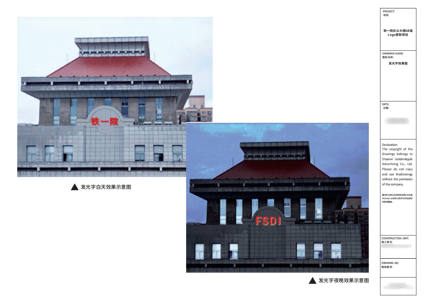 本項目所涉及的企業(yè)樓體發(fā)光字,涉及A、B雙樓棟,及中英文雙字體。超高樓棟頂部發(fā)光字的呈現(xiàn),到底該是藝術的表達還是技術的投入?