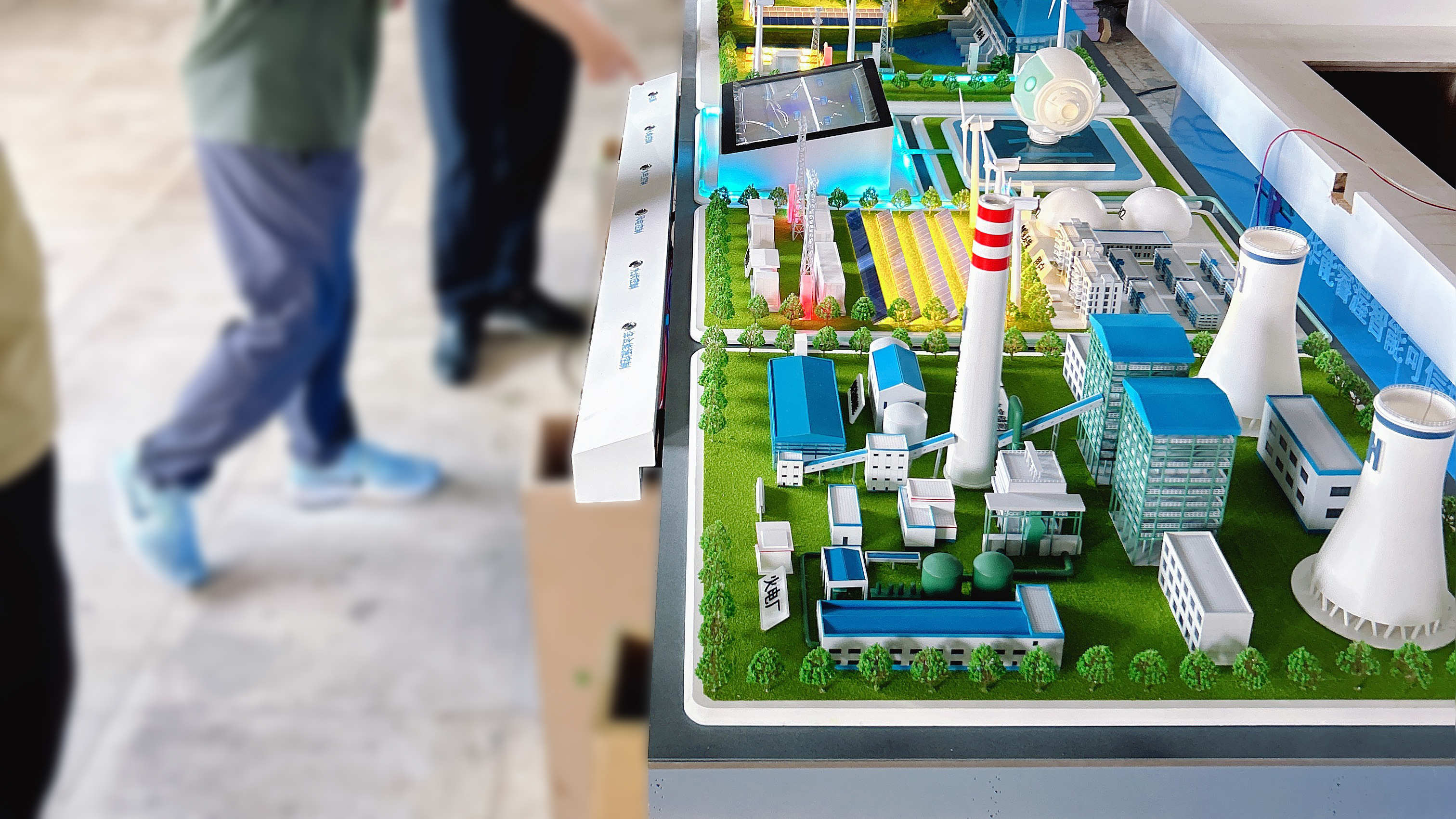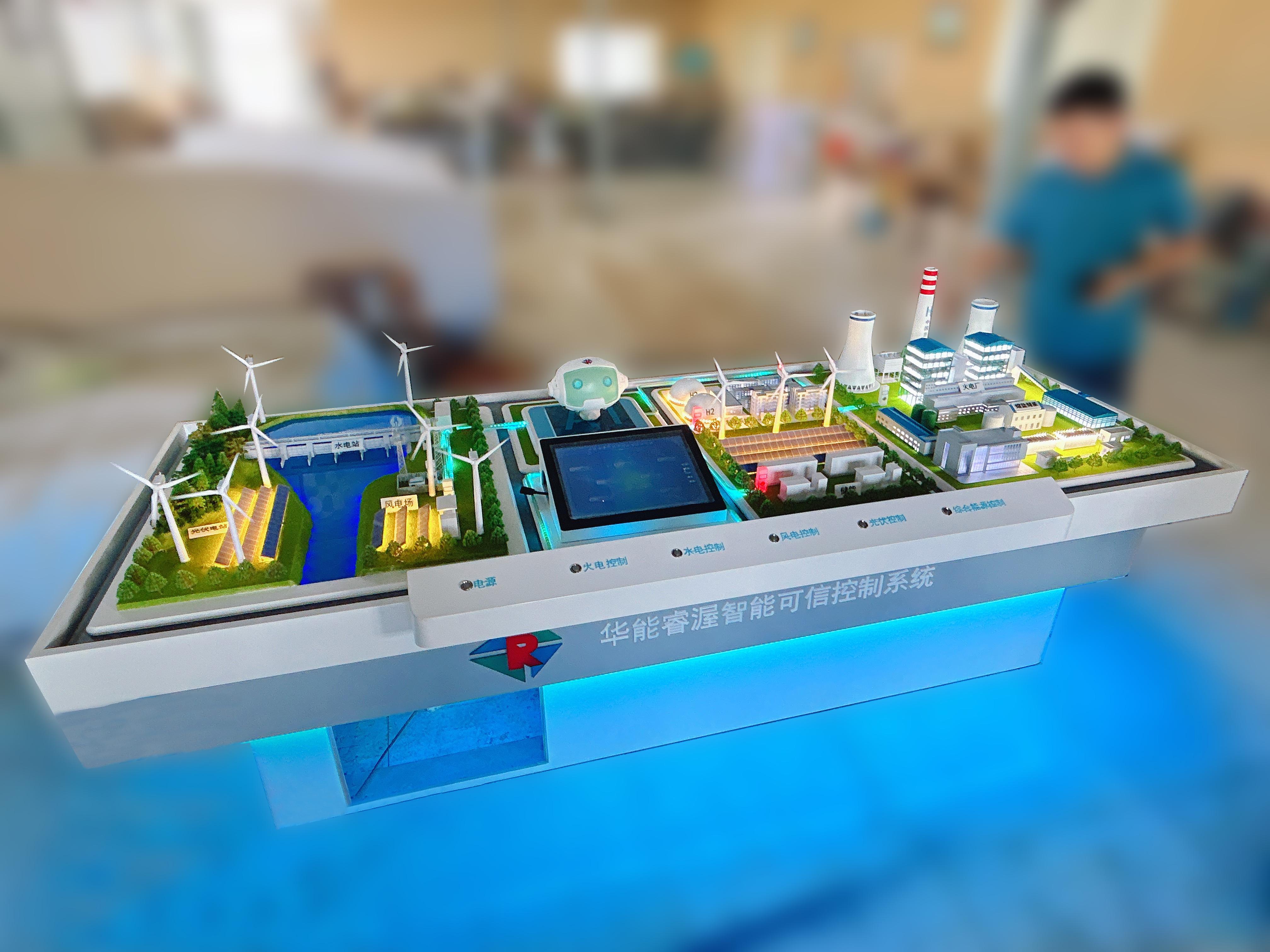 智能可控沙盤模型的設(shè)計,不同于其他項目的設(shè)計,它不是創(chuàng)意的集中展示,而是真實系統(tǒng)的寫實還原。本項目設(shè)計工作在正式開展前,多次與客戶溝通真實場景圖紙及模型所需呈現(xiàn)的要素,對整體的架構(gòu)及排布有了初步了解?;趯δP涂蚣芙Y(jié)構(gòu)及場景概念的了解,設(shè)計工作順利開展,通過現(xiàn)代化的設(shè)計手段,并綜合3D打印技術(shù)、LED流動光源、AI機器人、霧化流動等技術(shù)效果,精細(xì)設(shè)計模型中的一角一線、一點一面,材質(zhì)和線、角、面等外立面結(jié)構(gòu),加以寫實、高純度、層次分明的色彩,將真實系統(tǒng)按照一定比例縮放,從而呈現(xiàn)更加智能、流暢、可控的模型組合。
