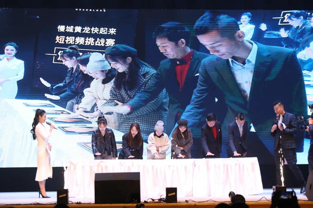 六位獲獎?wù)甙聪率钟?,并簽下自己的名字,作為“黃龍城市旅游形象推廣大使”的一份承諾,代表自己將在一年的簽約期內(nèi),踐行自己的義務(wù),同時也是推廣黃龍的一份榮耀,他們將在短視頻的自媒體浪潮中繼續(xù)乘風(fēng)破浪,綻放光彩。