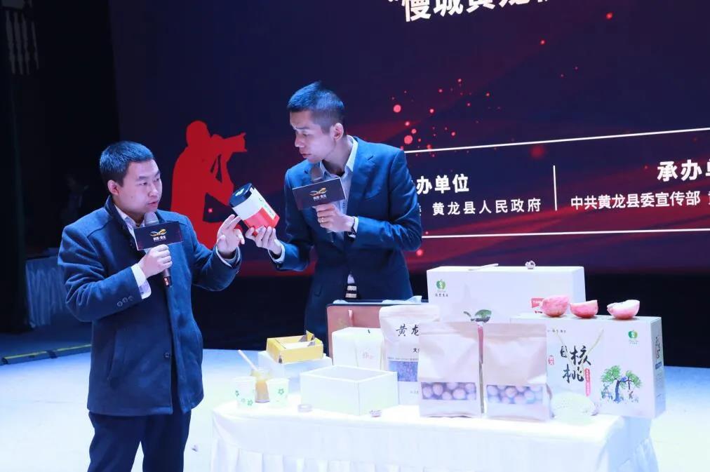 當(dāng)頒獎典禮進行到高潮時,驚喜福利環(huán)節(jié)正式登場。黃龍?zhí)厣a(chǎn)品琳瑯滿目,快手大V們直播帶貨,線上,粉絲們在直播間觀看、搶購;現(xiàn)場觀眾也搶到了黃龍旅游特產(chǎn),體驗到別樣的黃龍風(fēng)味。