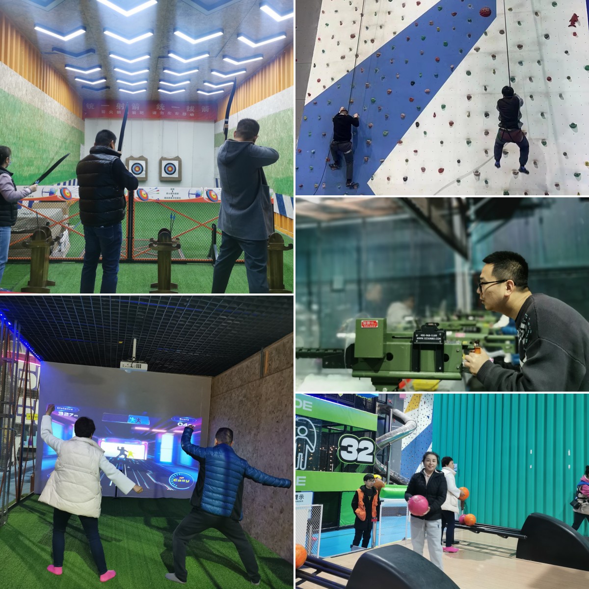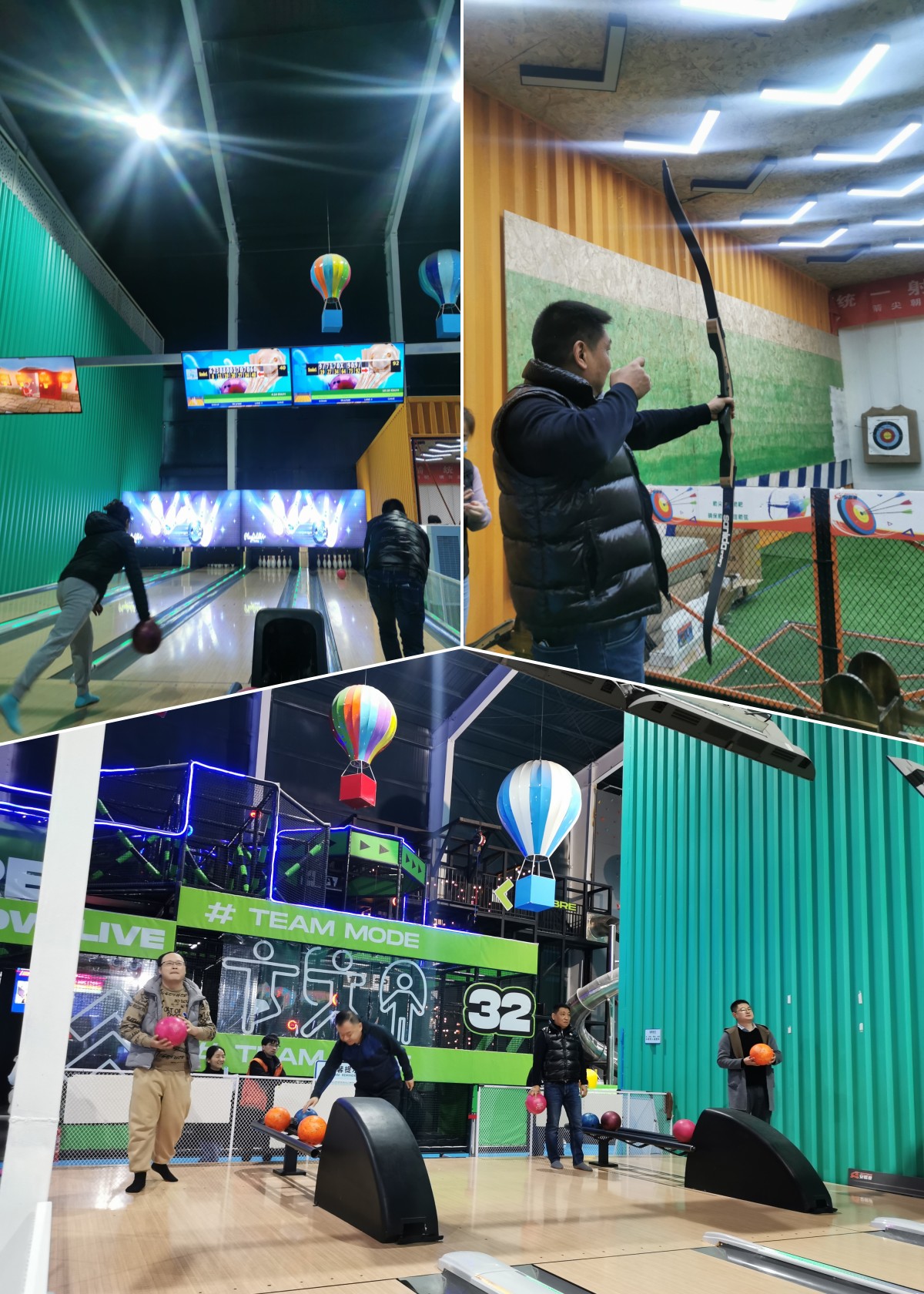 運(yùn)動(dòng)娛樂場(chǎng)館內(nèi),琳瑯滿目的娛樂器材及道具,將每一位小伙伴游玩的興致都瞬時(shí)拉滿,攀巖、射箭、射擊、騎牛斗士、斗舞機(jī)、蹦床籃球等多款?yuàn)蕵酚螒蚨紖⑴c其中,興奮之情溢于言表。更值得一提的是,在盡興時(shí),小伙伴們發(fā)起了保齡球分組投擲比拼,每組4人,當(dāng)大家紛紛相繼拎起保齡球,在球道精準(zhǔn)投出,眼神也追逐著翻滾的球,看著球瓶在球的撞擊下應(yīng)聲倒地,游戲的快感也再次攀升!在每人完成10局投擲后,比拼的成績(jī)也出爐,其中章總獲得最高分,項(xiàng)目部武強(qiáng)獲得第二名,延總獲得第三名,當(dāng)然分?jǐn)?shù)不是重點(diǎn),過程中愉悅的氛圍才是關(guān)鍵!