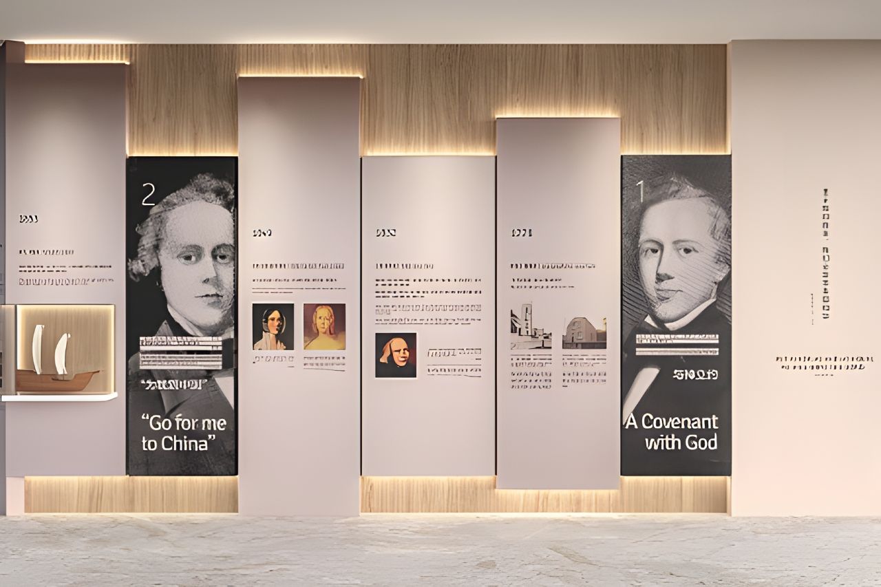 文化墻作為空間中的敘事劇場,將裝飾性與文化性完美融合。圍繞特定主題,深挖地方歷史、文化與人物故事,以插畫的生動筆觸勾勒場景,以照片的紀實視角留存記憶,以文字的凝練表達串聯(lián)情節(jié)。通過連貫的敘事設(shè)計,讓墻面成為文化傳承的窗口,引導(dǎo)觀眾在觀賞過程中感悟文化的深層價值。